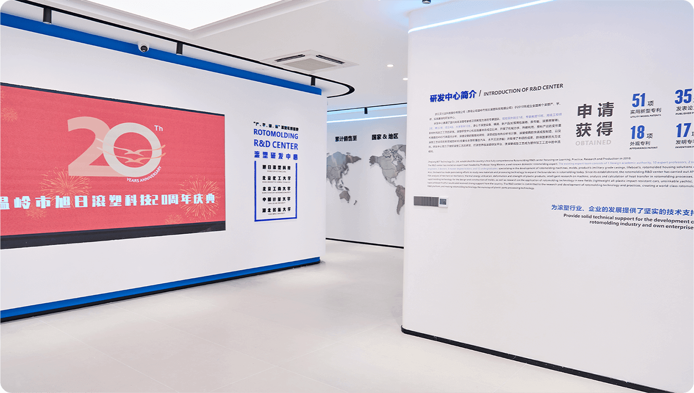 公司始于2003年,是一家全球性滾塑技術研發(fā)平臺的科技型企業(yè),現已發(fā)展成為滾塑設備、滾塑模具、滾塑制品三大板塊的民營企業(yè);是“國家高新技術企業(yè)”、“品質世界、浙江制造”和“浙江省科技型企業(yè)”及滾塑設備“浙江制造團體標準”起草單位;為“全球滾塑聯盟成員”、“中國塑料加工工業(yè)協(xié)會滾塑 專業(yè)委員會副主任單位”、“中國標準化協(xié)會滾塑技術專業(yè)委員會主任單位”、“北美滾塑協(xié)會成員”、“大洋洲滾塑協(xié)會成員”、“中國國防工業(yè)協(xié)會會員單 位”。作為國內以滾塑設備、模具、制品自主研發(fā)為核心的高新技術企業(yè),公司通過了UL、CE、ISO9001-2008、VB等一系列認證。 公司與國內多家知名高校建立了 “產、學、研、用” 滾塑研發(fā)生產實踐基地,并與加拿大工程院院士賽恩·莫西尼合作建立了院士工作站,擁有一支經驗豐 富的研發(fā)和制造團隊。近年來,通過公司研發(fā)中心潛心研究,在滾塑設備、滾塑模具、高端滾塑制品應用方面取得了豐碩的成果。 通過公司研發(fā)人員的不斷努力, 已申請專利44項,其中已獲得授權發(fā)明專利17項; 產品遠銷歐洲、美洲、大洋洲等地區(qū);目前為“全球滾塑聯盟會員”、 “中國國防工業(yè)企業(yè)協(xié)會會員單位”、“中國標準化協(xié)會滾塑專業(yè)技術委員會主任單位”、“臺州市郵輪游艇行業(yè)協(xié)會副會長單位”。 研發(fā)是企業(yè)發(fā)展的生命線,公司一貫秉承沒有研發(fā)就沒有發(fā)展的理念。堅決從科研抓起,全面樹立研發(fā)科技是中國企業(yè)發(fā)展的硬道理思想。通過嚴格的管 理制度和先進的研發(fā)、生產技術,以及以客戶為中心的服務理念、把好科研關、為客戶提供不斷創(chuàng)新的高質量產品!