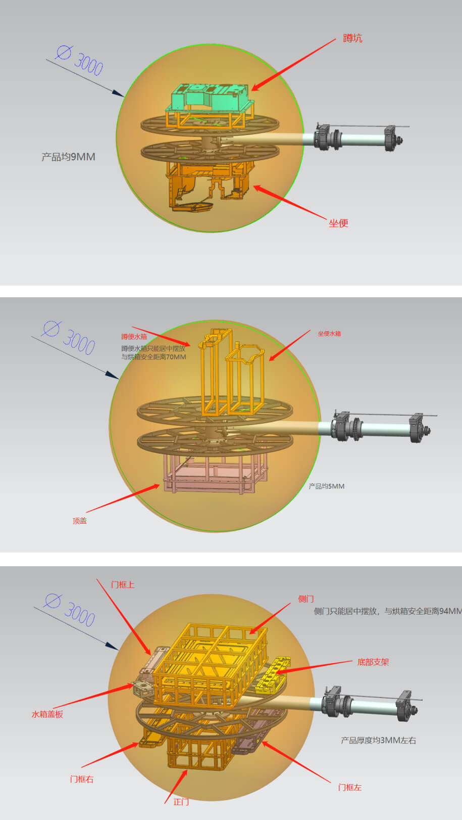 根據(jù)多種擺放組合方式及生產(chǎn)經(jīng)驗(yàn),旭日生產(chǎn)的3.0m直徑烘箱設(shè)備可以滿足大多數(shù)移動(dòng)廁所的生產(chǎn)前滾塑是生產(chǎn)輕量化,可回收移動(dòng)廁所的重要方式。