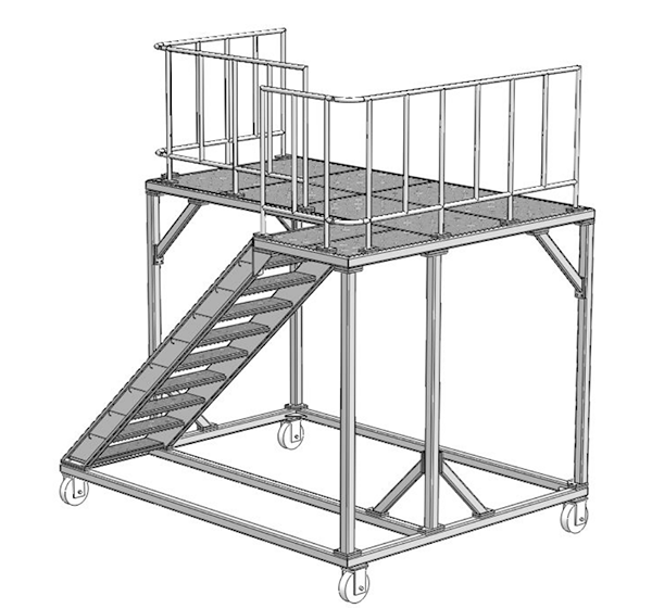 該平臺(tái)采用全鋼結(jié)構(gòu),底部配置萬(wàn)向輪及剎車(chē),非常靈活,適用于大多數(shù)的工廠(chǎng)環(huán)境。