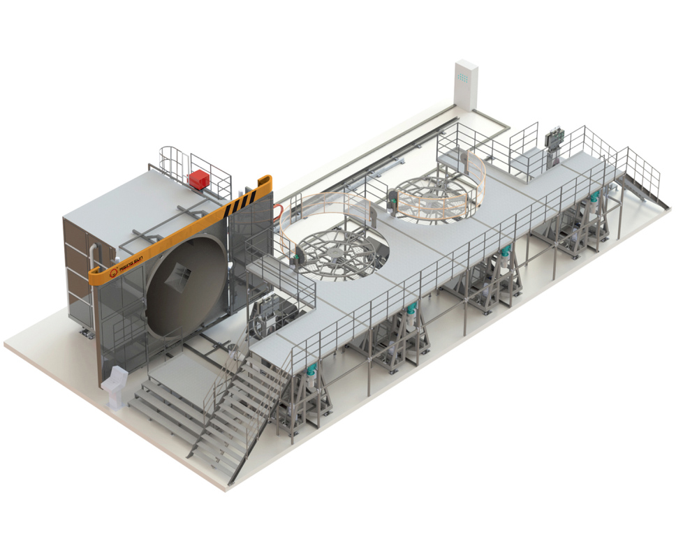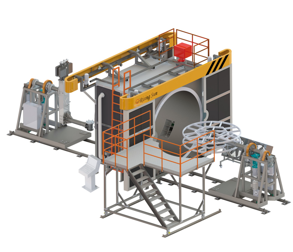 可以實(shí)現(xiàn)制品的量產(chǎn),相對穿梭式滾塑機(jī)可以提升30%工作效率。