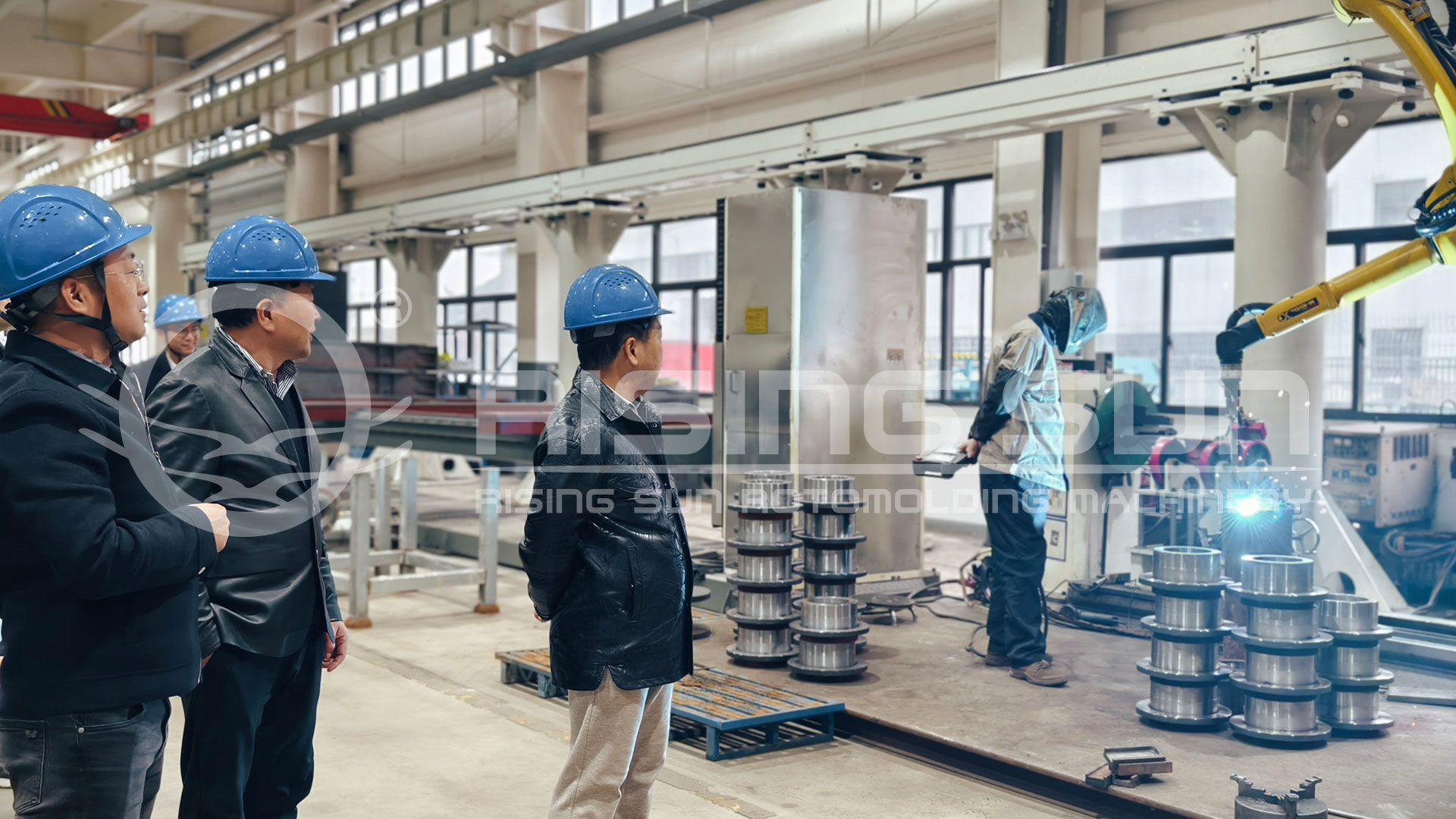 松門鎮(zhèn)政府領(lǐng)導(dǎo)首先參觀了公司的設(shè)備生產(chǎn)車間。企業(yè)負(fù)責(zé)人朱總詳細(xì)介紹了車間內(nèi)先進(jìn)的生產(chǎn)設(shè)備和技術(shù)工藝,包括多工位自動(dòng)焊接機(jī)器人、高精度數(shù)控機(jī)床等。朱總特別強(qiáng)調(diào)了公司在智能化生產(chǎn)和自動(dòng)化控制方面的投入和成果,展示了公司在提高生產(chǎn)效率和產(chǎn)品質(zhì)量上的努力。領(lǐng)導(dǎo)們對這些先進(jìn)技術(shù)的應(yīng)用表示高度贊賞,并著重了解了設(shè)備的運(yùn)作流程和維護(hù)情況。