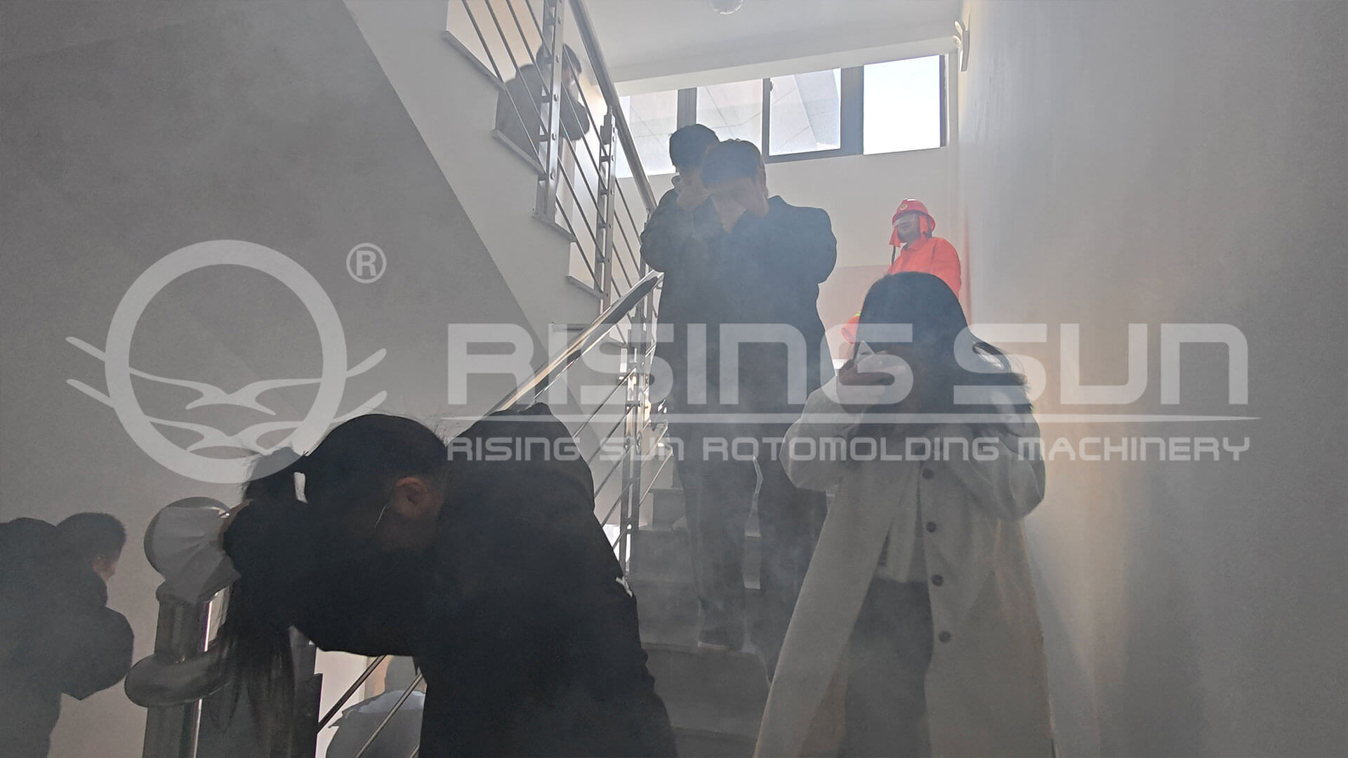 ?疏散引導(dǎo)員工用濕毛巾捂鼻、彎腰低姿,沿安全通道有序撤離至正門廣場集結(jié)點,實現(xiàn)全員安全疏散;