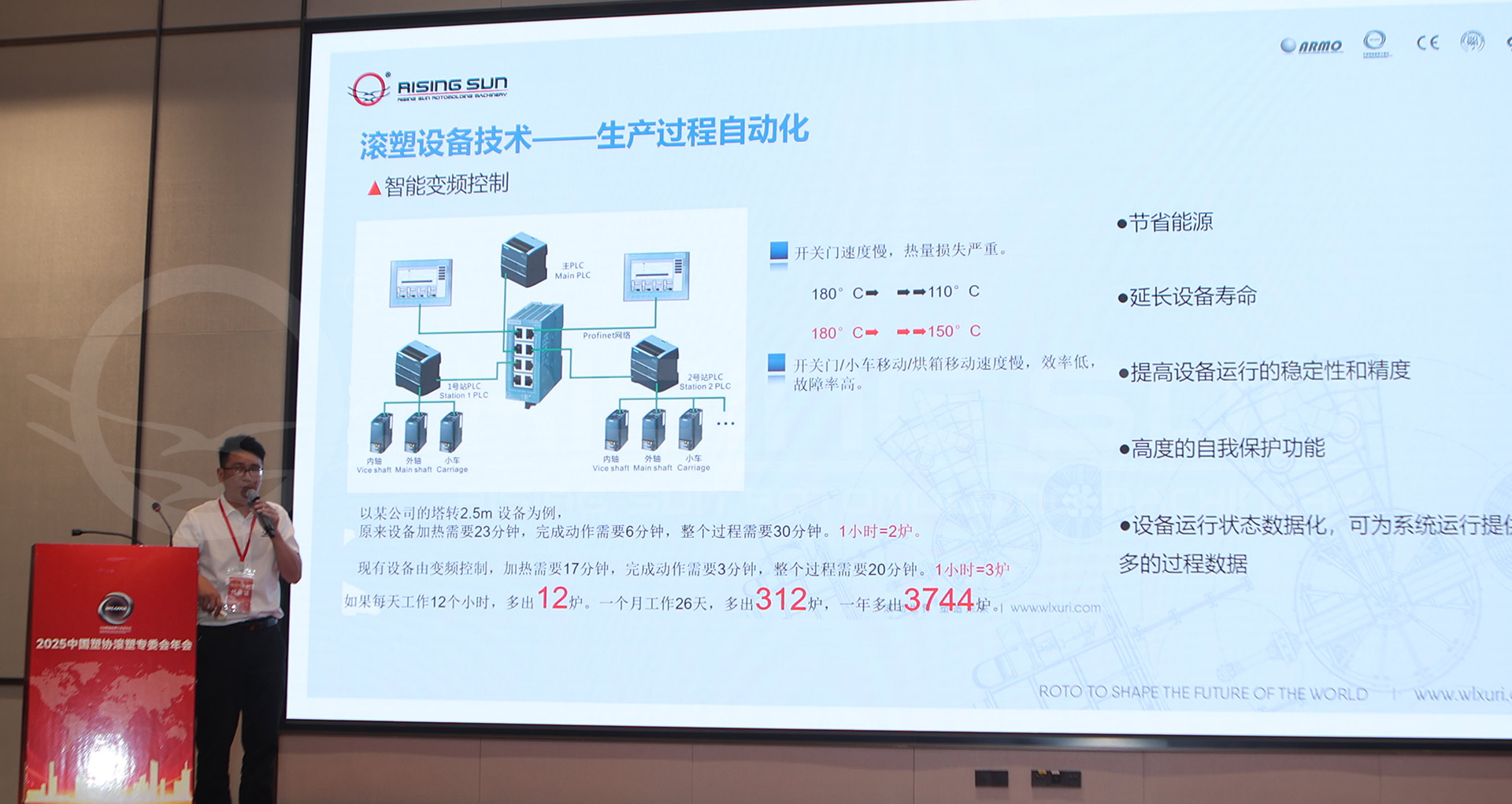 溫嶺市旭日滾塑科技有限公司市場部經(jīng)理李俊,在會上全面匯報了滾塑行業(yè)各項標準制定的推進進展——《如何實現(xiàn)滾塑高效、安全、節(jié)能生產(chǎn)》。公司近年來主導并參與了多項行業(yè)標準的制定,涵蓋滾塑設備智能化、模具設計規(guī)范等領(lǐng)域。