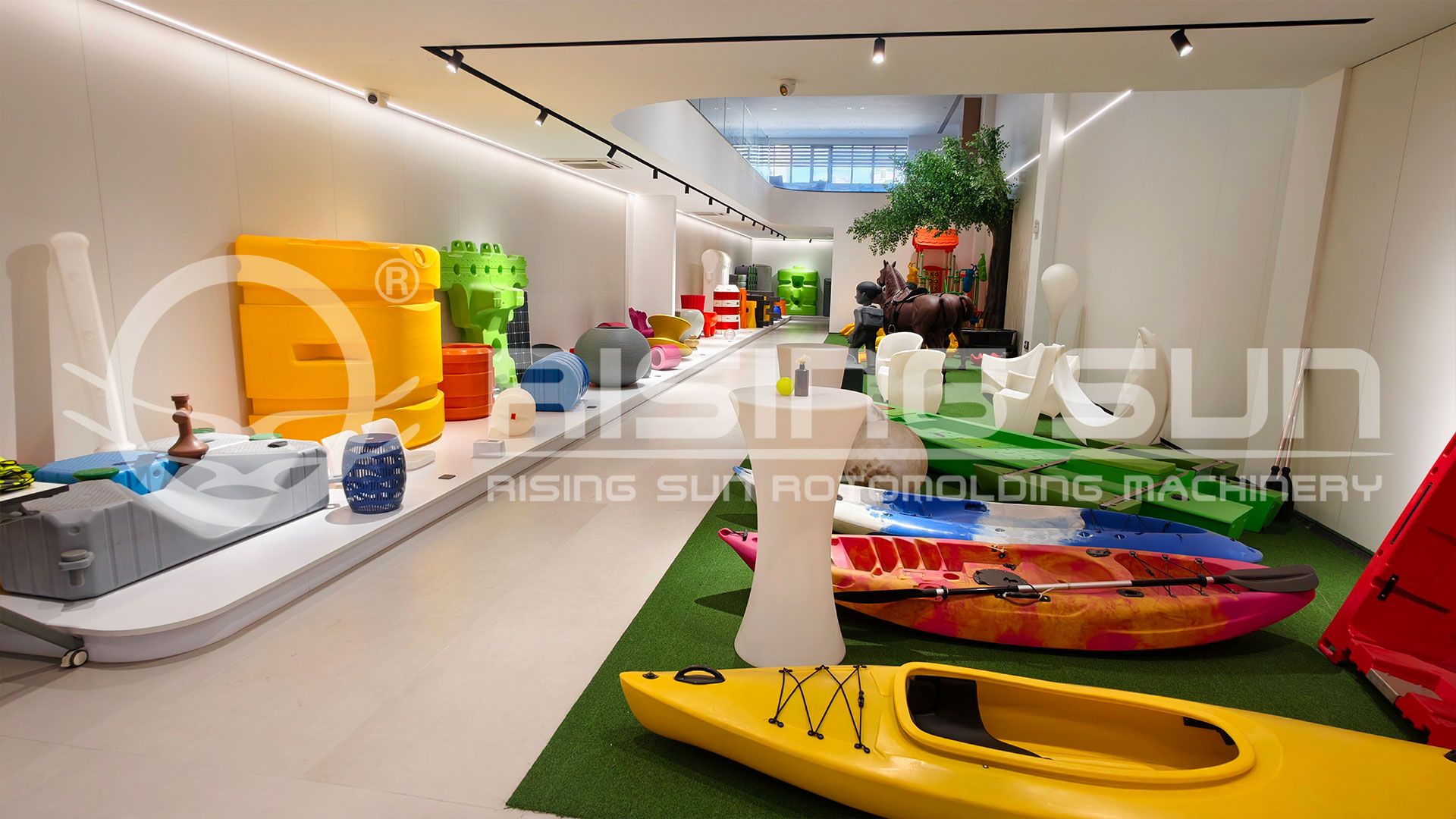我們的設(shè)備幾乎覆蓋了所有的滾塑相關(guān)行業(yè),包含但不限于:水箱,化糞池,化工罐,交通設(shè)施,游樂設(shè)施,船艇,花盆,清潔設(shè)備,畜牧業(yè),工程機(jī)械,水上浮體,家具,冷鏈運(yùn)輸?shù)鹊?。很多客戶覺得我們公司的滾塑展廳更像是一個(gè)滾塑博物館。