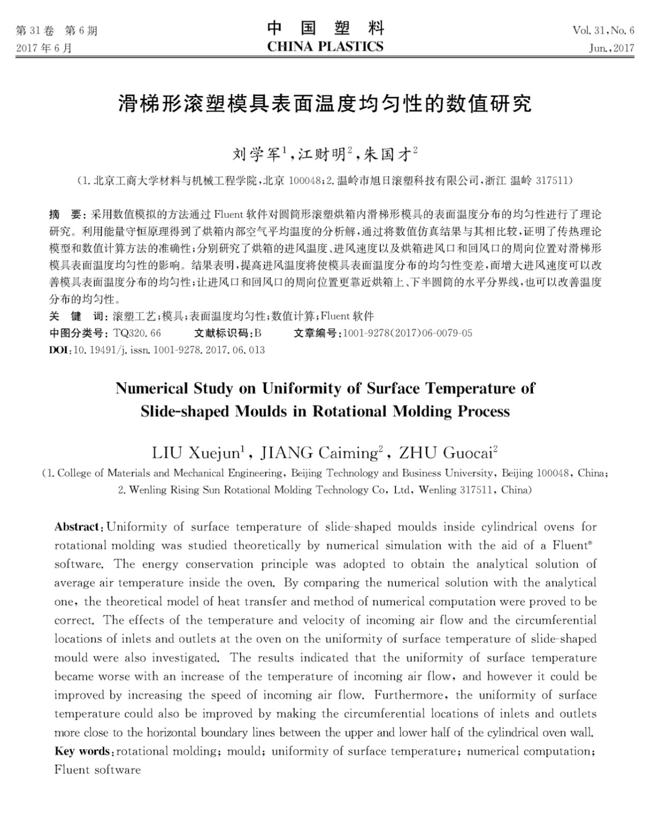 關(guān)鍵詞:滾塑工藝 ;模具 ;表面溫度均勻性 ;數(shù)值計算 ;