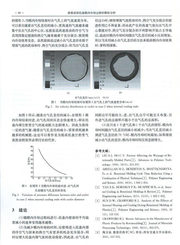 2018年11月,北京工商大學(xué)劉學(xué)軍教授和我司江輝在《中國(guó)塑料期刊》11月刊發(fā)表了關(guān)于《滾塑成型托盤模內(nèi)冷卻過程的模擬分析》的文章。