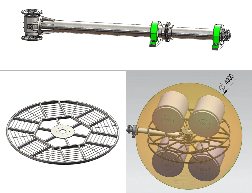 多配置于較大穿梭式烘箱設(shè)備,以生產(chǎn)較大較重的滾塑制品。雙點(diǎn)支撐可以提供大的承重。