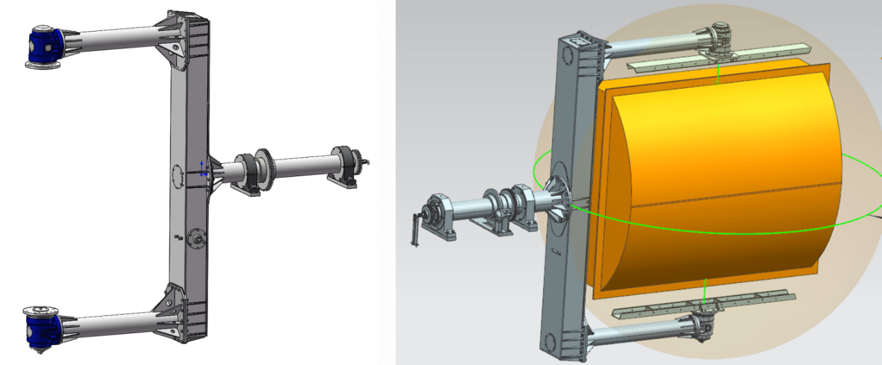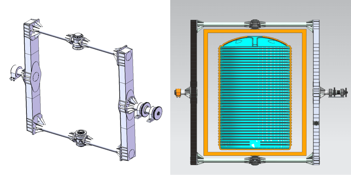 盡可能大的利用大型滾塑烘箱的空間,同時(shí)為滾塑模具提供更大更穩(wěn)定的旋轉(zhuǎn)承重環(huán)境。配合內(nèi)框可以試旋轉(zhuǎn)更加穩(wěn)定。